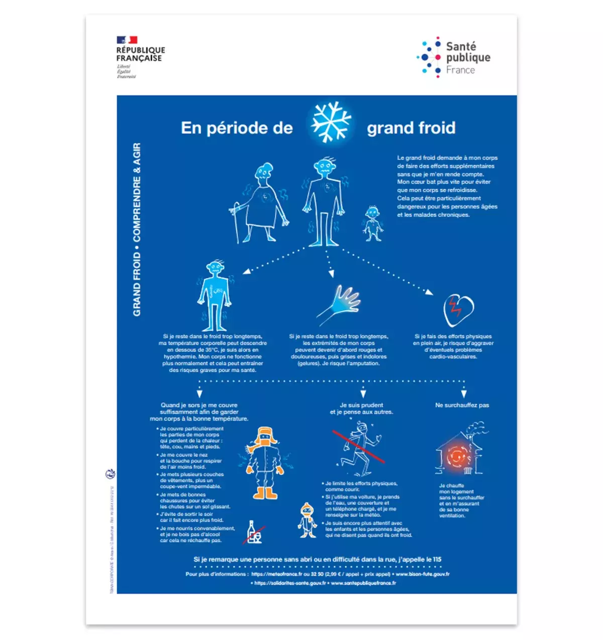 Le dispositif « grand froid » comprend entre autres une affiche en couleur ou en noir et blanc, au format A4 qui vise à prévenir les risques liés au grand froid :